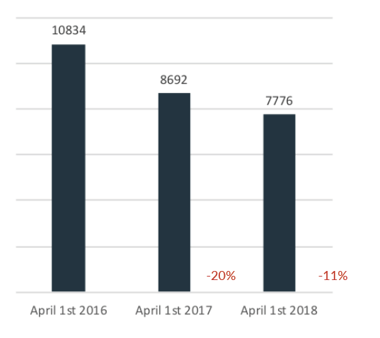 Listing levels have been shrinking for years. April 1st inventory was down 11% from last year and 28% lower than it was in 2016.